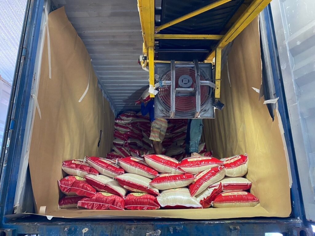 Bagged rice is typically loaded into 20ft or 40ft containers using the following process: